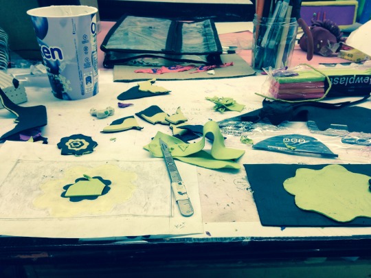 In a small group we were guided to make specific small pieces such as dots and lines to decorate larger objects made such as a drain pipe and TV screen ‘video’.