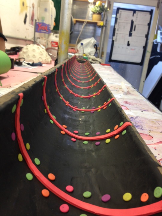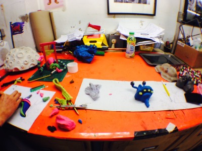 At Clapham Rd Studios in London I was carving sets made from clay. Strangely enough the ship load of multi-coloured clay came from just down the road from my house in Devon. Who’d of thought that that’s where he found UV clay!