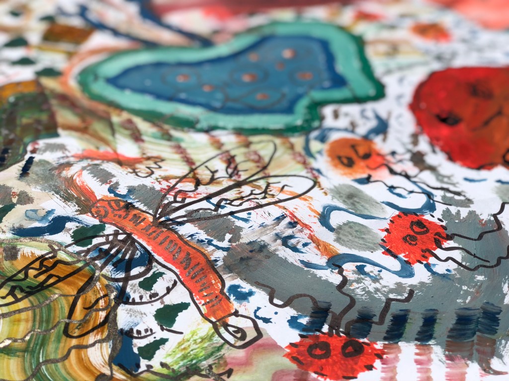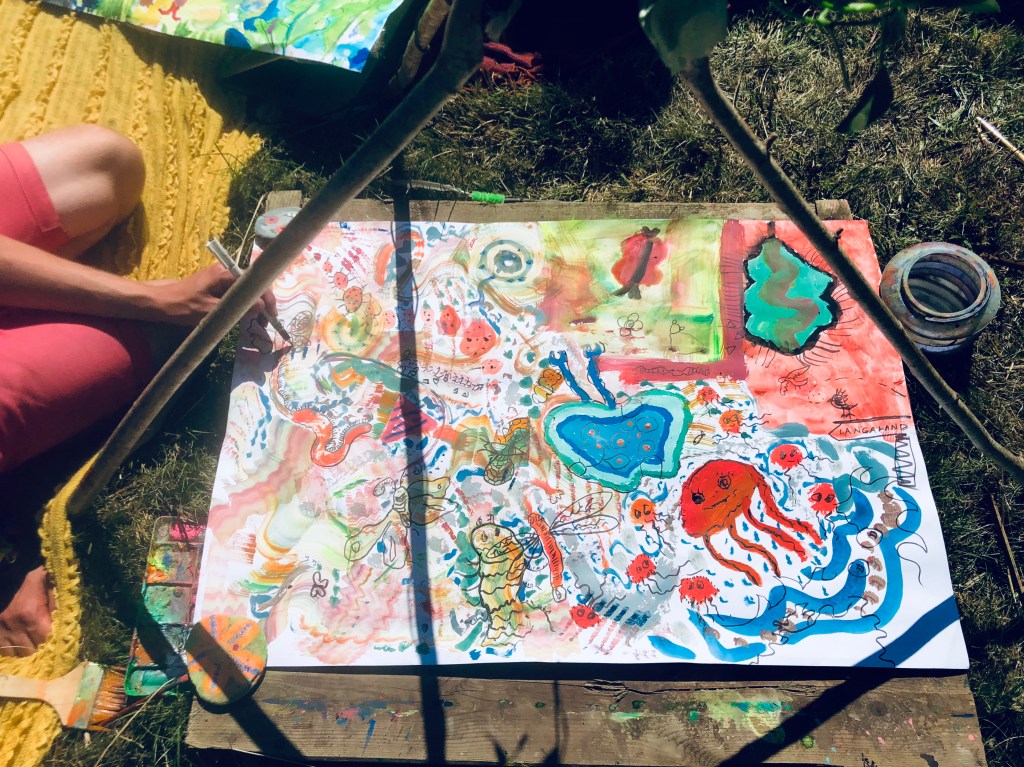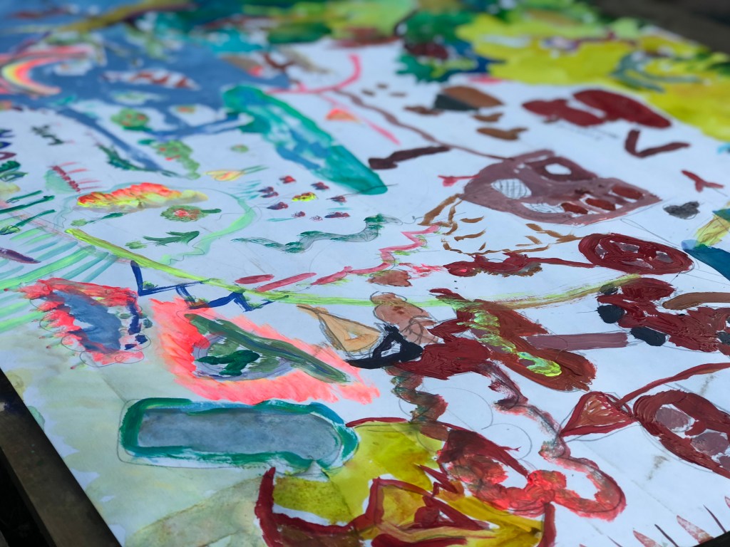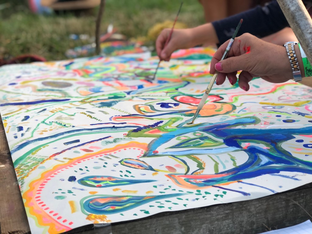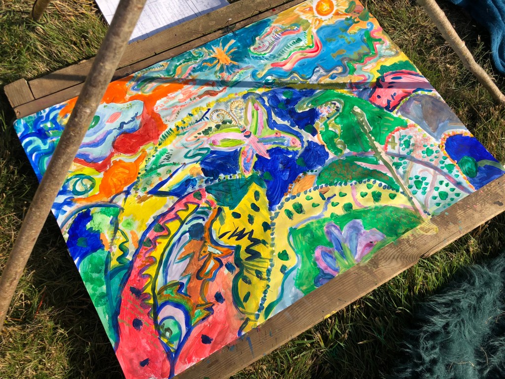 This lead to some interesting colours, patterns and innovate ideas about what to do. The workshop is very unconfined to any particular style as such, so we try to focus on primordial, abstract styles to allow people to become uncaged from their safety bubble and what they perceive it to look like.