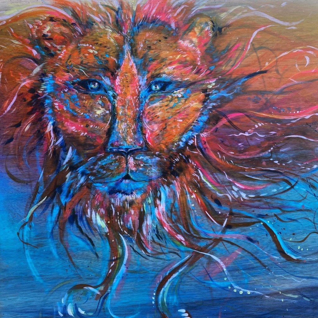 I had the best time this weekend painting this lovely lion. My intention was for everyone to look into the eyes of the lion and gain the majestic, strong and courageous power from the intense gaze.