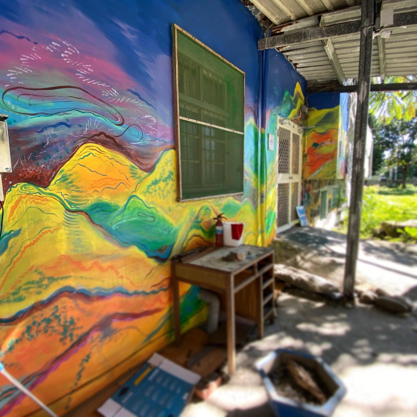 Volunteering to paint a mural at Cien Art Village