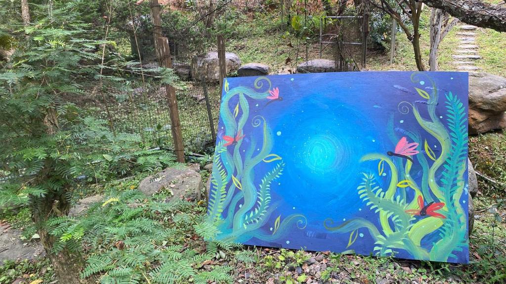 I painted some backgrounds for the World Jaw Harp festival in Puli! ๐ฆ I loved the location, it gave me lots of inspiration for the colours. ๐