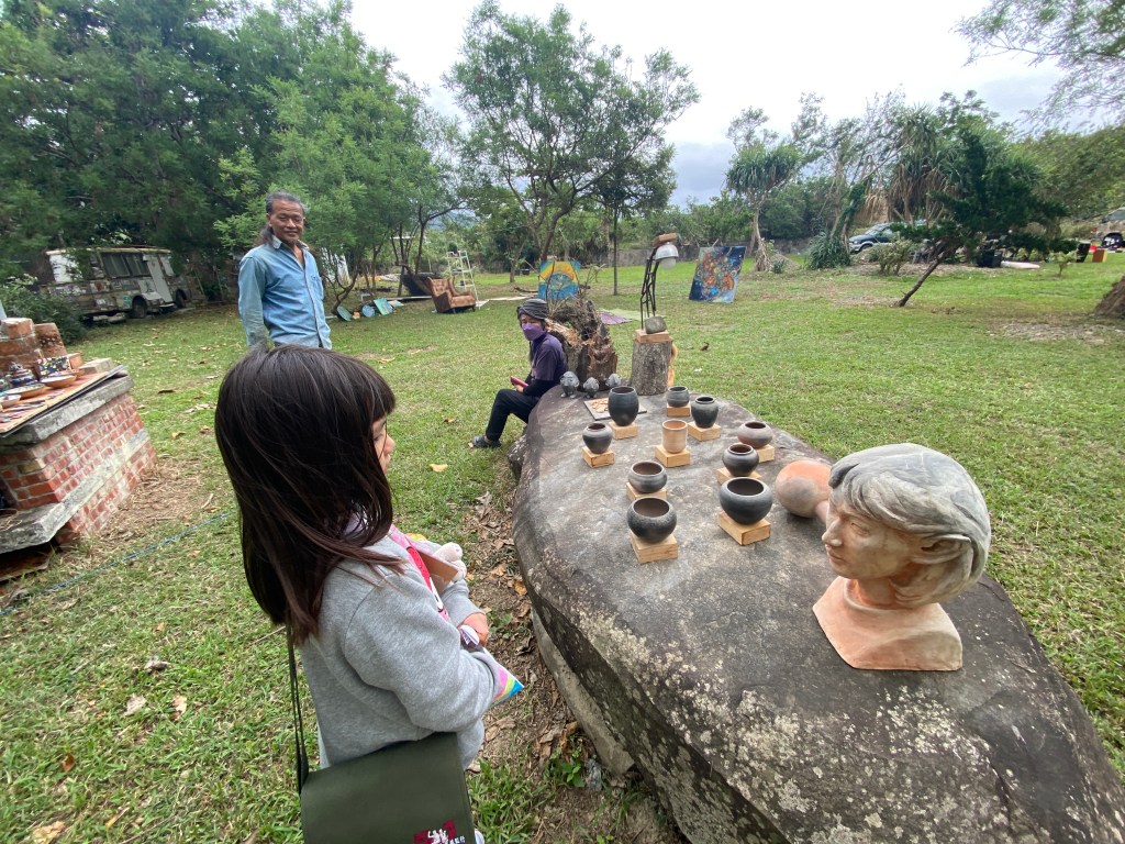 We had artists from as far as Taitung, exhibiting their handmade items, jewlery and the painters and potters art pieces were on full display. Tattoo artists were focussing inside the huts which were dedicated for them to safely and privately tattoo in.